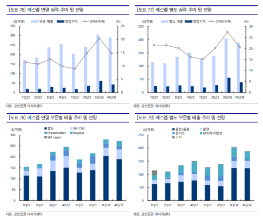 박성국 연구원은 "최근 버추얼 아이돌(이세계아이돌, 플레이브) 성장세를 봤을 때, 의외의 흥행카드가 될 수 있다"며 "향후 SM Japan과 USA 통한 로컬IP도 발굴 계획으로 내년 영업이익은 2232억원으로 전년 대비 42.4% 증가할 것"이라고 예상했다. 이에 투자의견 매수와 목표주가 18만원을 유지했다.
