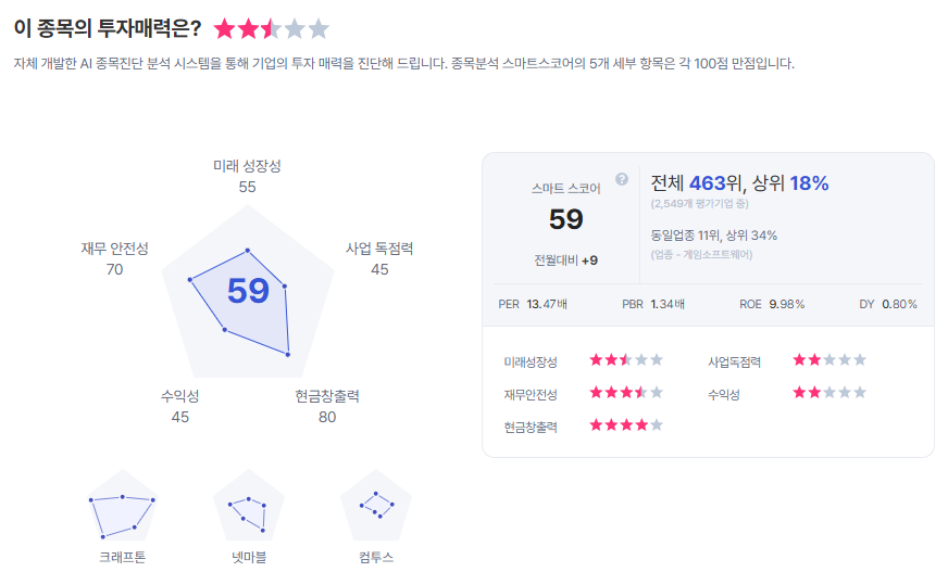 | 엔씨소프트 종목진단 (출처=초이스스탁) |