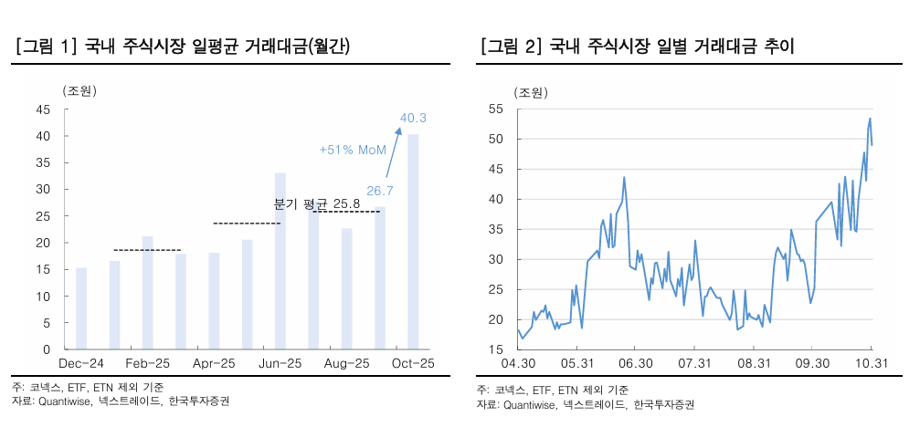 ◇ 10월 국내 일평균거래대금 40.3조...역대 최대치 근접