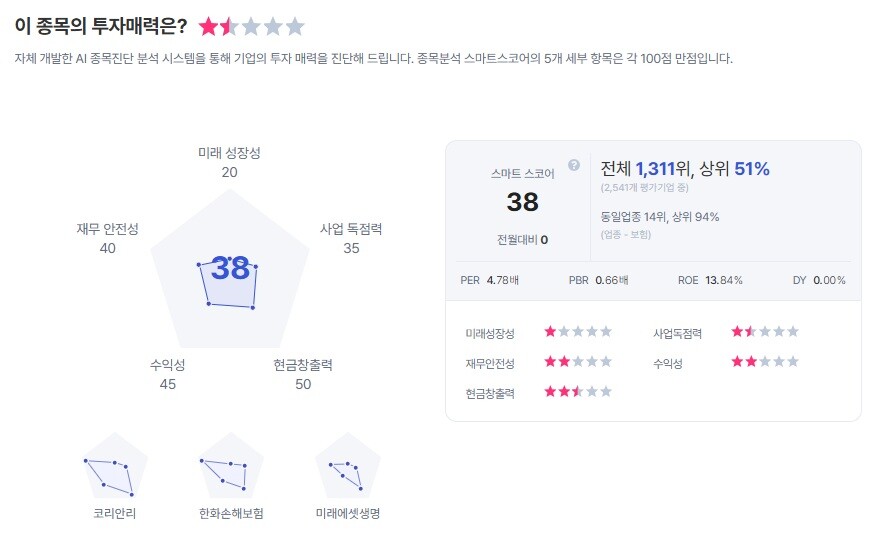 | 동양생명 종목진단 (출처=초이스스탁) |