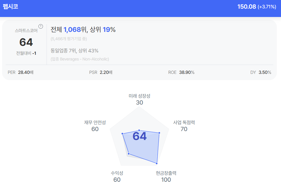 | 펩시코 종목진단 (출처=초이스스탁) |