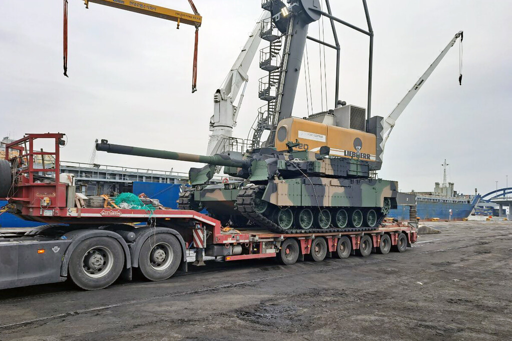 폴란드 그드니아 항구에 도착한 폴란드 K2 전차 모습 (사진= 현대로템) |