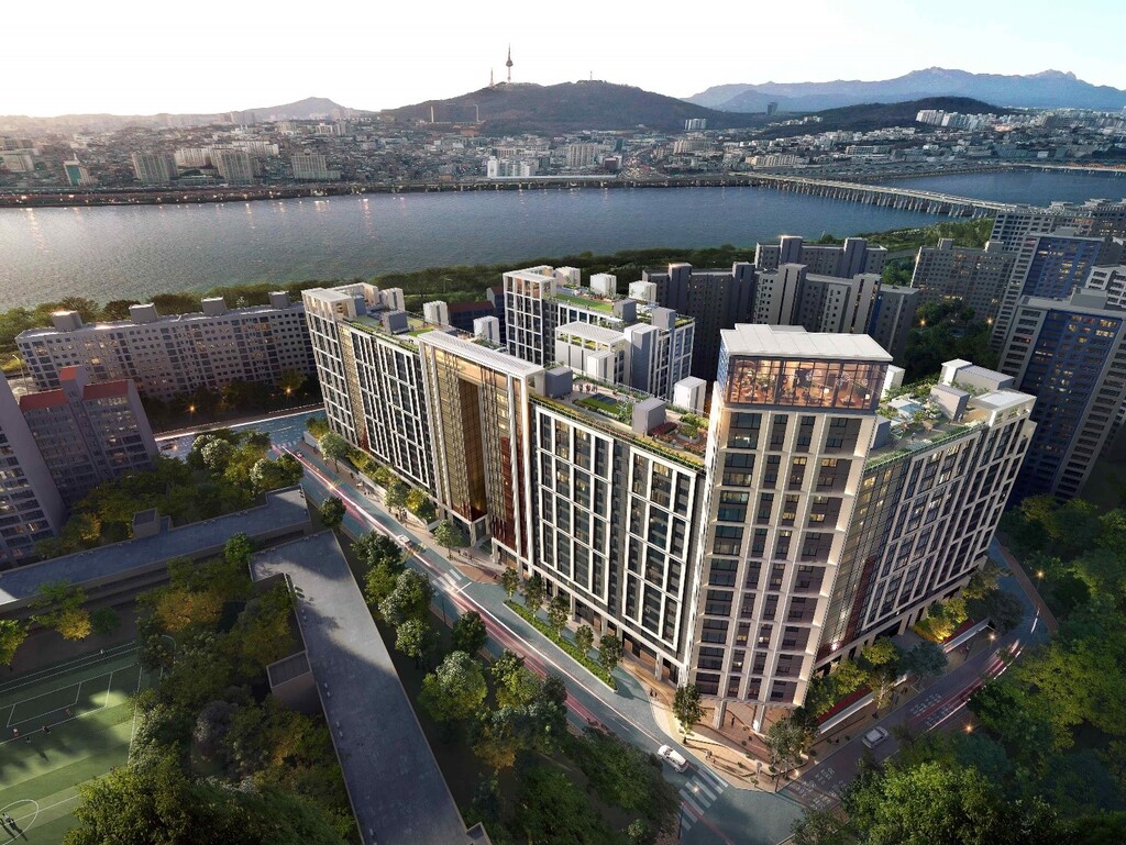 외관에는 한강 물결을 모티브로 한 커튼월룩과 경관조명을 적용하며, 프리미엄 골프 연습장과 프라이빗 시네마 등 개인 라이프스타일을 반영한 고급 커뮤니티 시설도 구현할 예정이다.