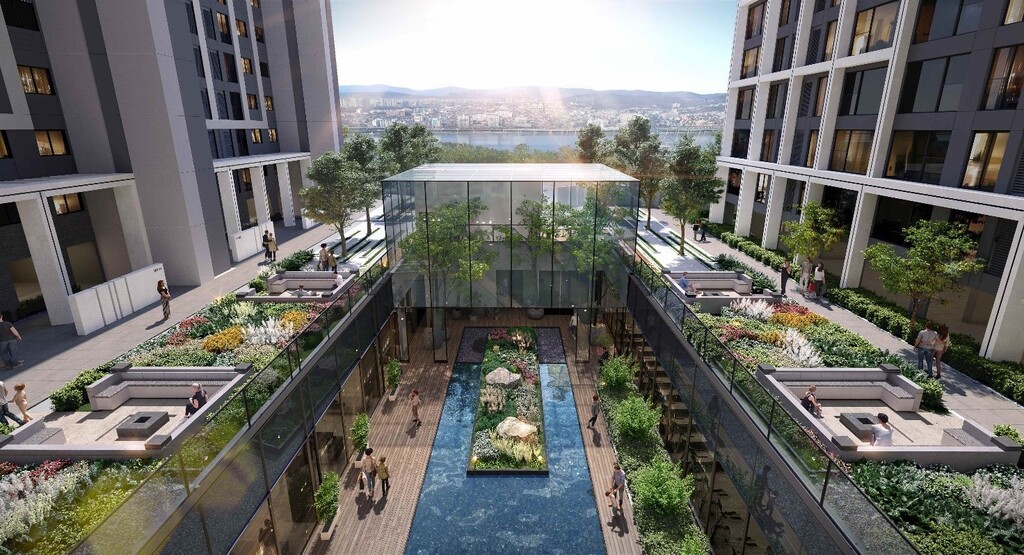 단지 중앙에는 큐브 모양의 실내정원과 수변 공간 등 상징적인 조형 요소를 갖춘 선큰광장을 제안했으며, 내부에는 자연 숲을 그대로 재현한 산책로 등 다양한 조경 공간도 조성해 그린 라이프를 누릴 수 있도록 설계됐다.