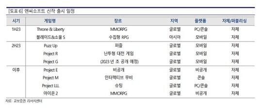 김동우 교보증권 연구원은 "경쟁 MMORPG들의 출시로 기존 리니지 라인업의 매출 하락은 지속될 것으로 전망하나, 올해 1분기 'Throne & Liberty', 2분기 'Project G'의 출시로 실적 방어가 가능할 것"이라고 판단했다.