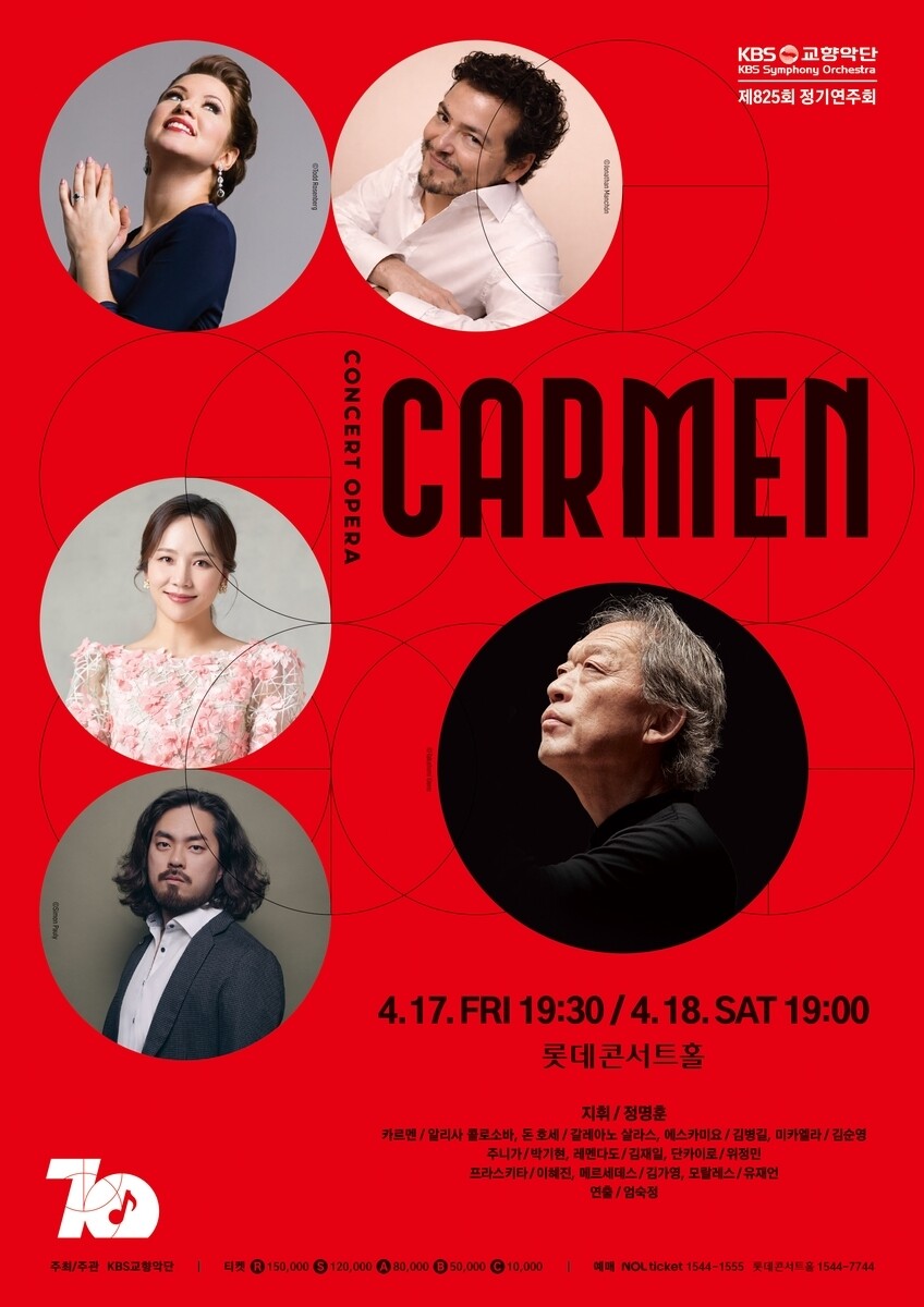 [알파경제 = 이고은 기자] KBS교향악단이 오는 17일부터 18일까지 서울 롯데콘서트홀에서 음악감독 정명훈의 지휘로 조르주 비제의 오페라 '카르멘'을 콘서트 오페라 형식으로 선보인다.
