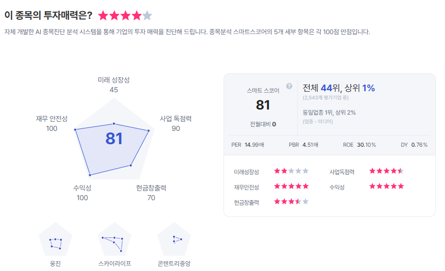| JYP Ent. 종목진단 (출처=초이스스탁) |