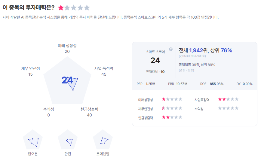| 티웨이항공 종목진단 (출처=초이스스탁) |