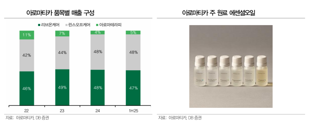 올해 상반기 품목별 매출 구성은 리브온케어 47%, 린스오프케어 48%, 아로마테라피 5%이다.