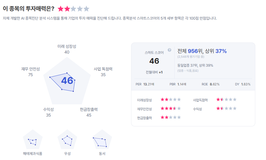 | 교촌에프앤비 종목진단 (출처=초이스스탁) |