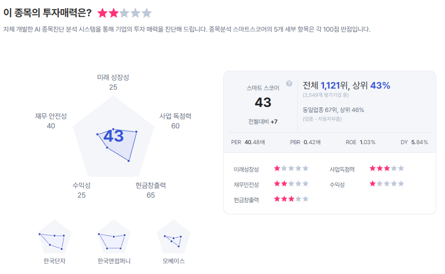 | HL홀딩스 종목진단 (출처=초이스스탁) |