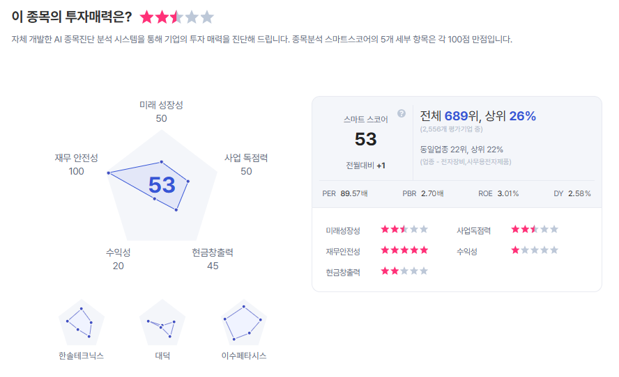 | 대덕전자 종목진단 (출처=초이스스탁) |
