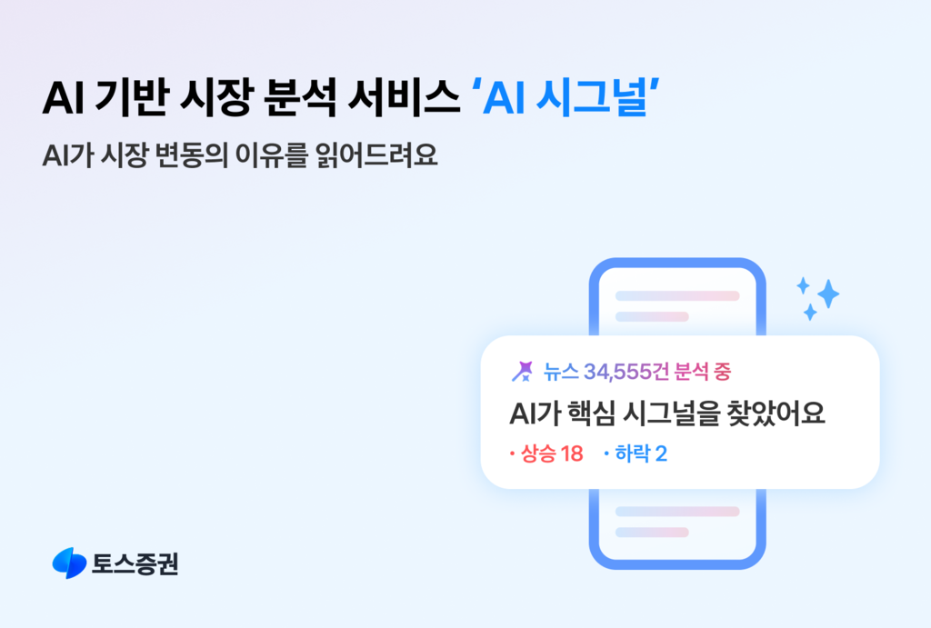 [알파경제=문선정 기자] 토스증권(대표 김규빈)이 인공지능(AI) 기술을 활용한 시장 분석 서비스 'AI 시그널'을 출시했다고 12일 밝혔다.