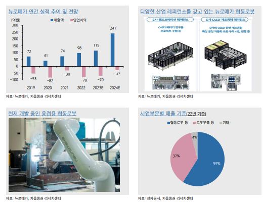 김학준 키움증권 연구원은 "최근 국내 대기업들이 자동화공정 라인에 협동로봇 적용을 검토 중인 것으로 추정된다"며 "협동로봇 전문 업체로 다양한 산업 라인에 적용이 가능하다"고 판단했다.
