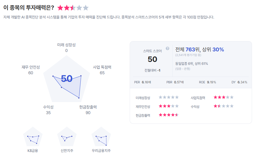 | 하나금융지주 종목진단 (출처=초이스스탁) |