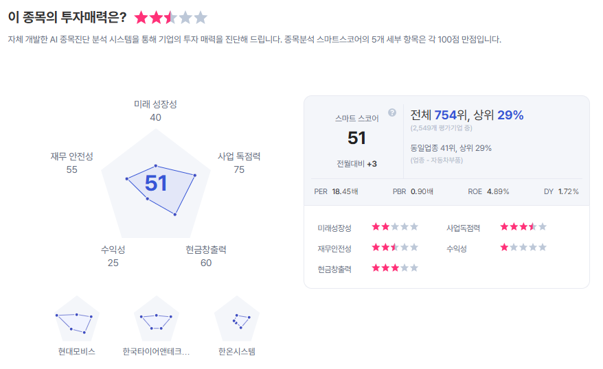 | HL만도 종목진단 (출처=초이스스탁) |