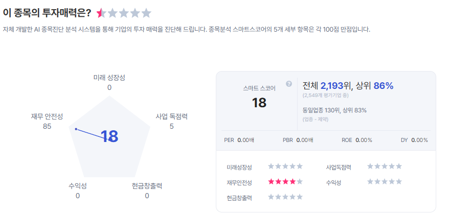 | 삼성에피스홀딩스 종목진단 (출처=초이스스탁) |