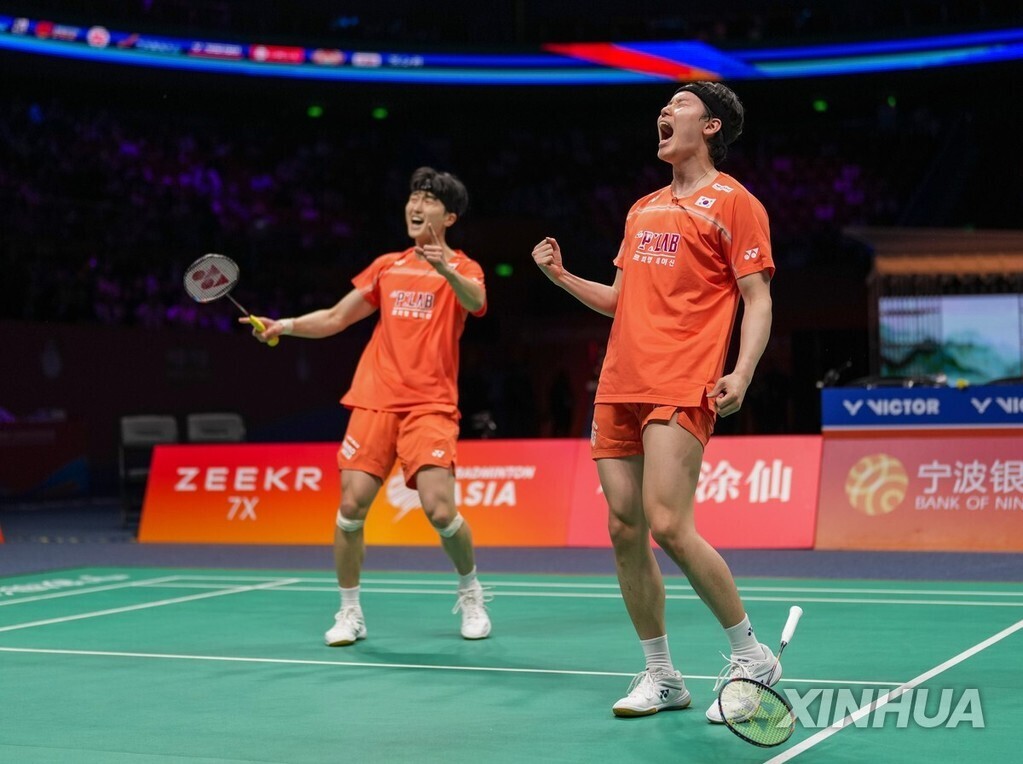 | 사진 = 남자복식 세계랭킹 1위 김원호와 서승재(좌측부터) [신화통신=연합뉴스] |