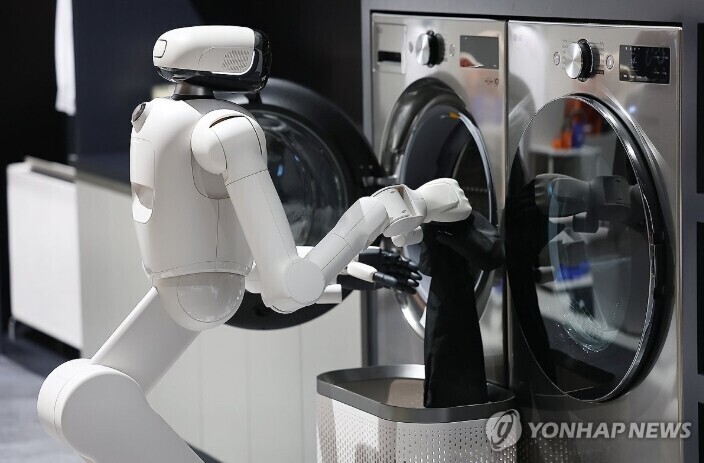 | 계 최대 가전·정보기술(IT) 전시회 CES 2026을 앞둔 5일(현지시간) 미국 네바다주 라스베이거스 컨벤션센터(LVCC) LG전자 부스에서 홈 로봇 '클로이드'가 세탁물을 세탁기에 넣고 있다. (사진=연합뉴스) |