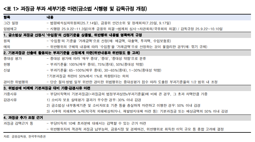 하지만 지난 19일 발표된 은행 자본규제 합리화 방안을 통해 과징금 관련 운영리스크 산출방식이, 22일 입법예고한 과징금 부과 세부기준 마련을 통해 과징금 규모 자체에 대한 리스크가 축소됐다는 평가다.