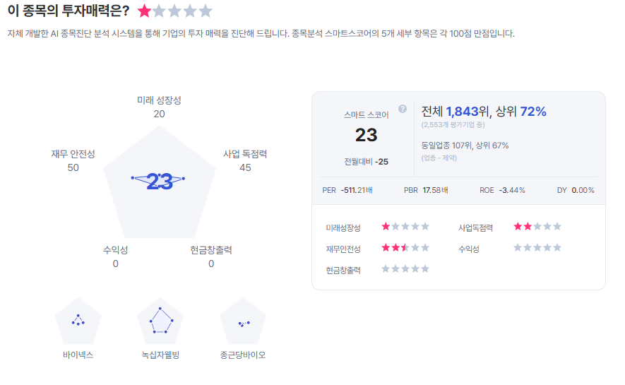 | 한올바이오파마 종목진단 (출처=초이스스탁) |