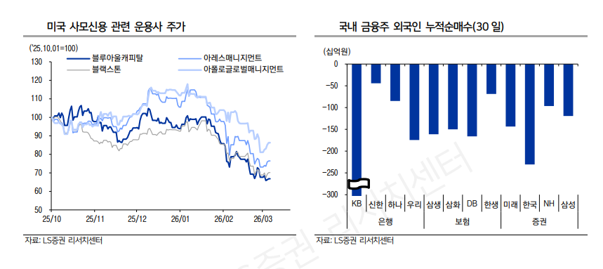 이에 따라 사모대출 부실우려가 해외뿐 아니라 국내 금융주 수급에도 부정적 영향을 미치고 있는 상황이다.
