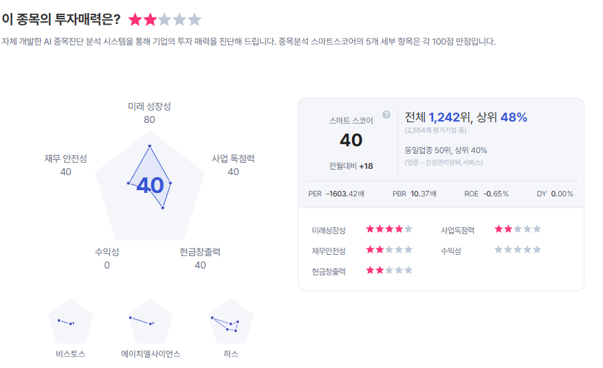 | 넥스트바이오메디컬 종목진단 (출처=초이스스탁) |