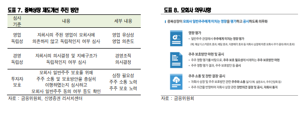 이번 제도 개편을 통해 자회사 상장에 대한 통제가 강화되고 모회사 이사회의 주주 충실의무가 명문화될 경우 ‘코리아 디스카운트’의 핵심 축중 하나가 점진적으로 완화될 수 있다는 전망이다.