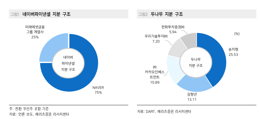 29일 금융투자업계에 따르면 최근 네이버파이낸셜과 두나무가 포괄적 주식교환을 추진한다는 보도가 나왔다.