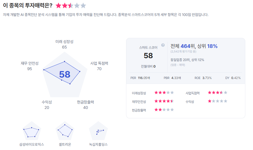 | 유한양행 종목진단 (출처=초이스스탁) |