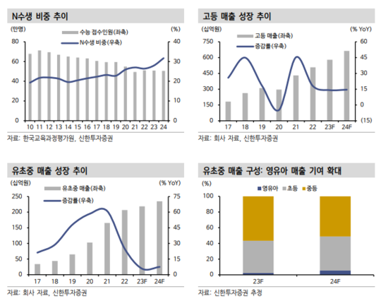 반면, 중등부문의 실적은 둔화할 것으로 추정된다. EBS 프리미엄 강의 무료화 영향이 2024년에 이어질 수밖에 없다는 판단이다.