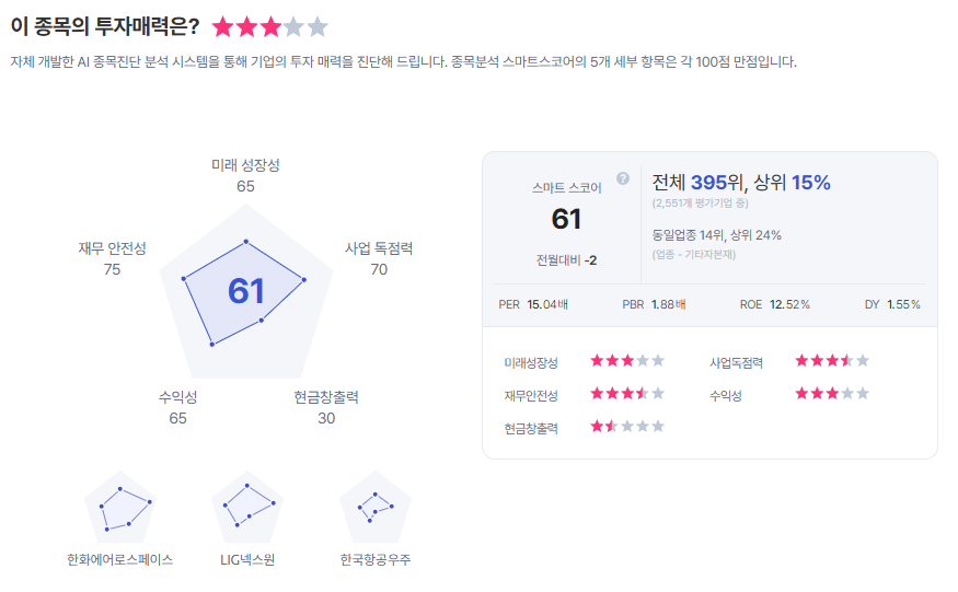 | 한화시스템 종목진단 (출처=초이스스탁) |
