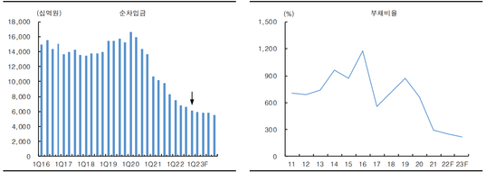 | 대한항공 3년 사이 순차입금이 9조원 감소한 점은 너무 큰 변화. 자료=한국투자증권 |