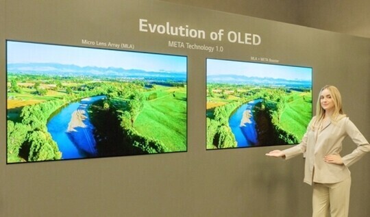 | LG디스플레이 모델이 '메타 테크놀로지'가 적용된 3세대 OLED TV 패널을 소개하고 있다. (사진=LG디스플레이) |