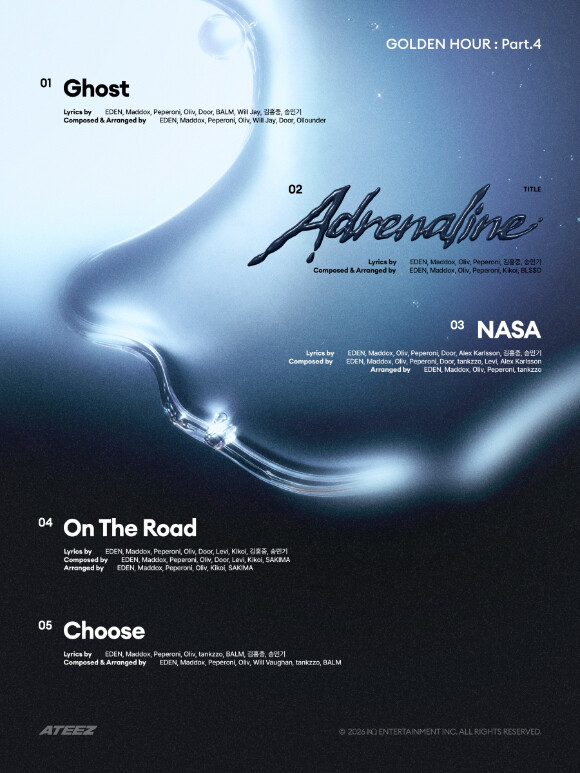 에이티즈는 최근 월드 투어 '인 유어 판타지(In Your Fantasy)'를 통해 글로벌 팬들과 소통하며 확고한 입지를 다져왔다. '골든 아워' 시리즈의 마지막을 장식할 이번 앨범을 통해 에이티즈가 선보일 독보적인 음악과 퍼포먼스가 전 세계 팬들의 '아드레날린'을 어떻게 폭발시킬지 귀추가 주목된다.