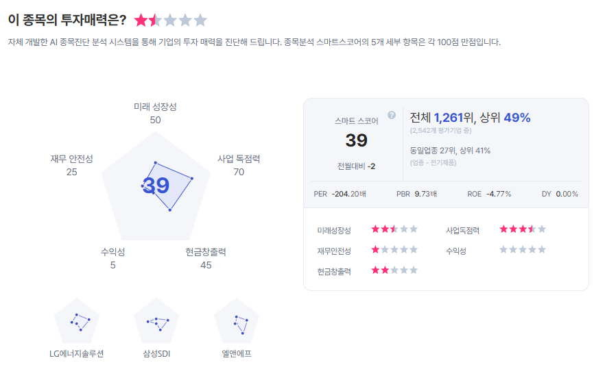 | 에코프로비엠 종목진단 (출처=초이스스탁) |