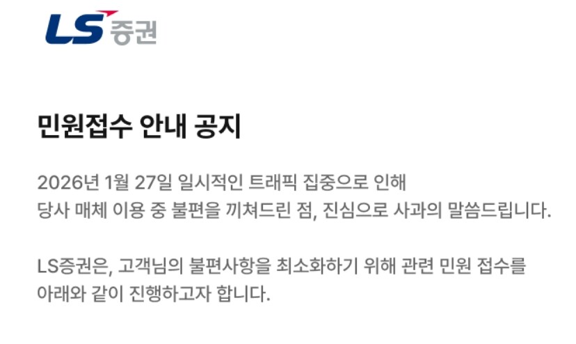 LS증권 관계자는 알파경제에 “장 초반 지수가 급락하면서 매도·매수 주문이 동시에 몰렸고, 이 과정에서 서버 처리 한계를 초과했다”며 “기술적 오류나 시스템 장애는 아니며, 관련 내용을 금융감독원에도 동일하게 보고했다”고 설명했다.