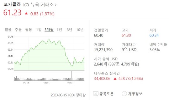 | 코카콜라 주가 추이(출처=네이버증권) |