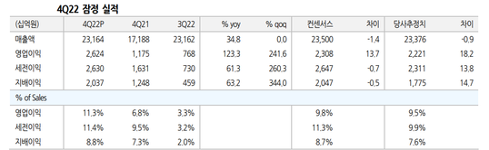 이재일 유진투자증권 연구원은 “원달러 환율 하락과 인센티브 상승 압력, 고금리에 따른 경기 하방 압력 등 만만치 않은 변수가 존재하지만 차별적인 이익 체력을 거듭 입증하고 있기 때문에 글로벌 점유율 상승과 가격 결정력 강화로 전년비 수익성 개선 가능할 것”이라고 전망했다.