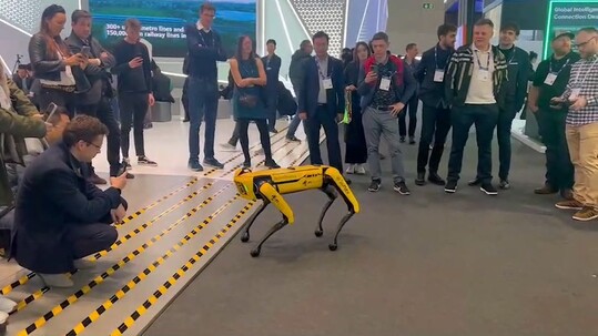 보스턴다이내믹스의 상징과 같은 로봇 개 스팟은 좌우 앞뒤 사족 보행을 시연했다. 특히 몸통을 비틀면서 밸런스를 잡는 고도화된 움직임을 보이자, 많은 관람객들이 사진과 동영상을 촬영했다.