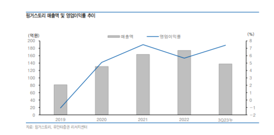 핑거스토리의 지난 3년간 매출액 연평균 성장률은 약 28.9%에 달하였고, 5% 수준을 상회하는 안정적인 마진율을 달성했다. 콘텐츠 플랫폼 시장 점유율 확대를 지속하고 있다는 평가다.