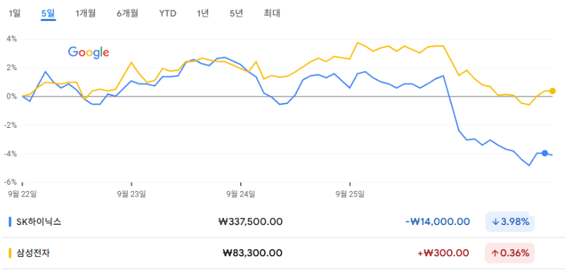 SK하이닉스는 26일 -5.47%로 급락하면서 주간 수익률도 손실을 기록했다.