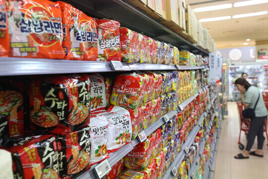 | 서울의 한 대형마트에 라면이 진열되어 있다. (사진=연합뉴스) |