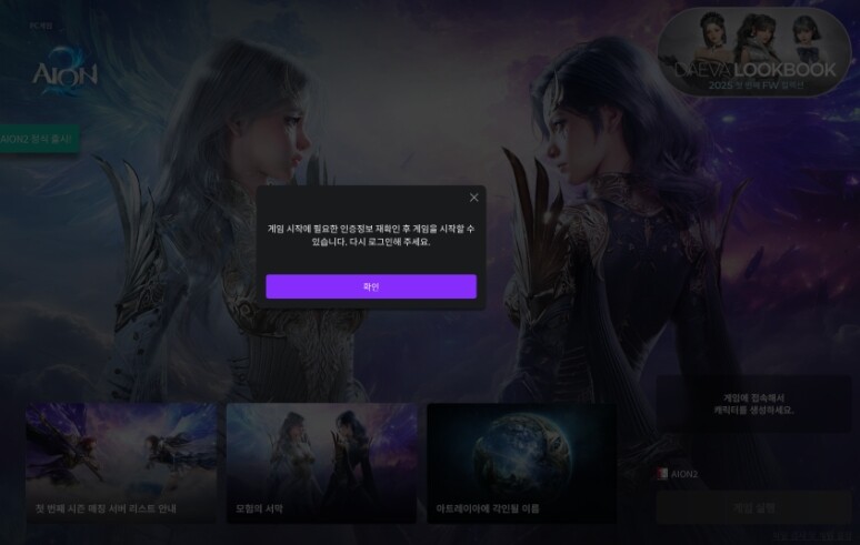 | 아이온2 접속 오류. (사진=온라인 커뮤니티) |
