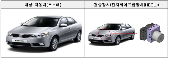 정부는 기아 포르테 1만9291대에서 전자제어유압장치(HECU)의 내구성 부족이 확인되어 이달 12일부터 시정조치를 진행 중이다.