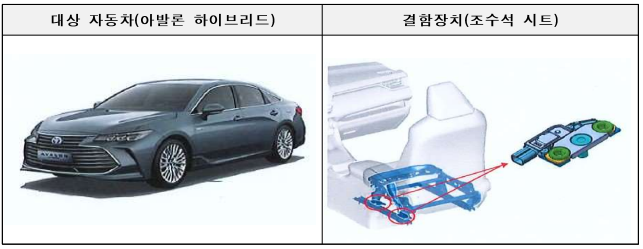 토요타 아발론 하이브리드 등 3개 차종에서는 조수석 승객감지 센서 회로기판 제조 불량이 발견되어 총 524대를 대상으로 오는 13일부터 시정조치가 이루어질 예정이다.