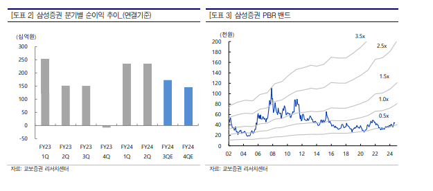김지영 연구원은 "2024년 상반기 견조한 실적 시현을 바탕으로 전년대비 연간 실적 개선이 예상되고, 삼성증권의 강점인 리테일 부문 경쟁력이 이익 증가로 이어지고 있다"며 " 배당성향을 고려한다면 2024년 배당수익에 대한 기대도 유효하다"고 판단했다. 이에 목표주가를 기존 5만원에서 5만4000원으로 상향하고 투자의견 매수를 유지했다.