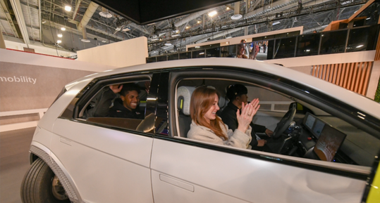 | 현대모비스는 CES 2024에서 차세대 전기차 구동장치 e코너시스템이 탑재된 모비온을 공개했다. 현지시간 9일부터 관람객들이 모비온에 탑승해 평행주행과 대각선 주행, 제자리 회전 등을 체험하고 있는 모습. (사진=현대모비스) |