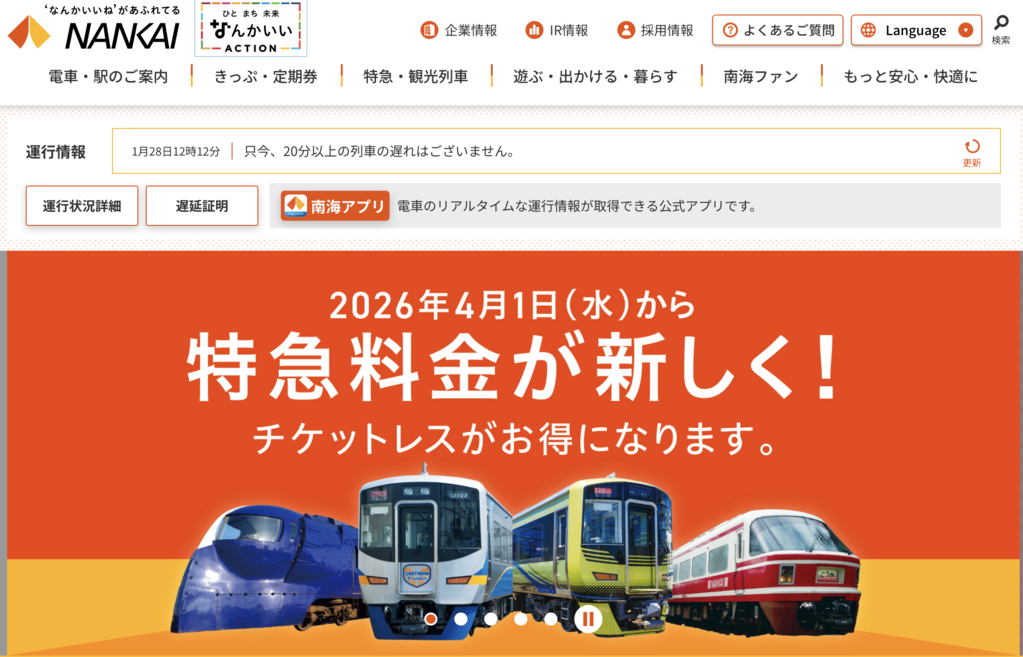오사카역과 간사이공항을 연결하는 특급으로는 JR서일본의 '하루카'도 운행 중이어서, 두 회사 간 요금과 차량 내부 서비스를 둘러싼 경쟁이 치열해질 전망이다.