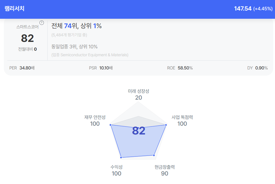 | 램리서치 종목진단 (출처=초이스스탁) |
